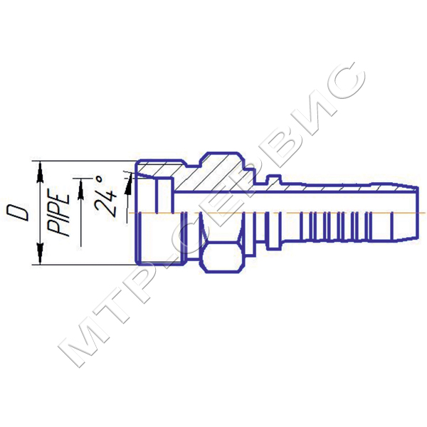 Фитинг гидравлический DKOS прямого исполнения, тяжелая серия. Гайка накидная с метрической резьбой DIN 3865. Посадочный конус (конус уплотнения) 24 градуса, на конусе уплотнительное МБС кольцо. От фитингов серии DKOL отличается диаметром посадочного конуса - смотри столбец Pipe трубка.
